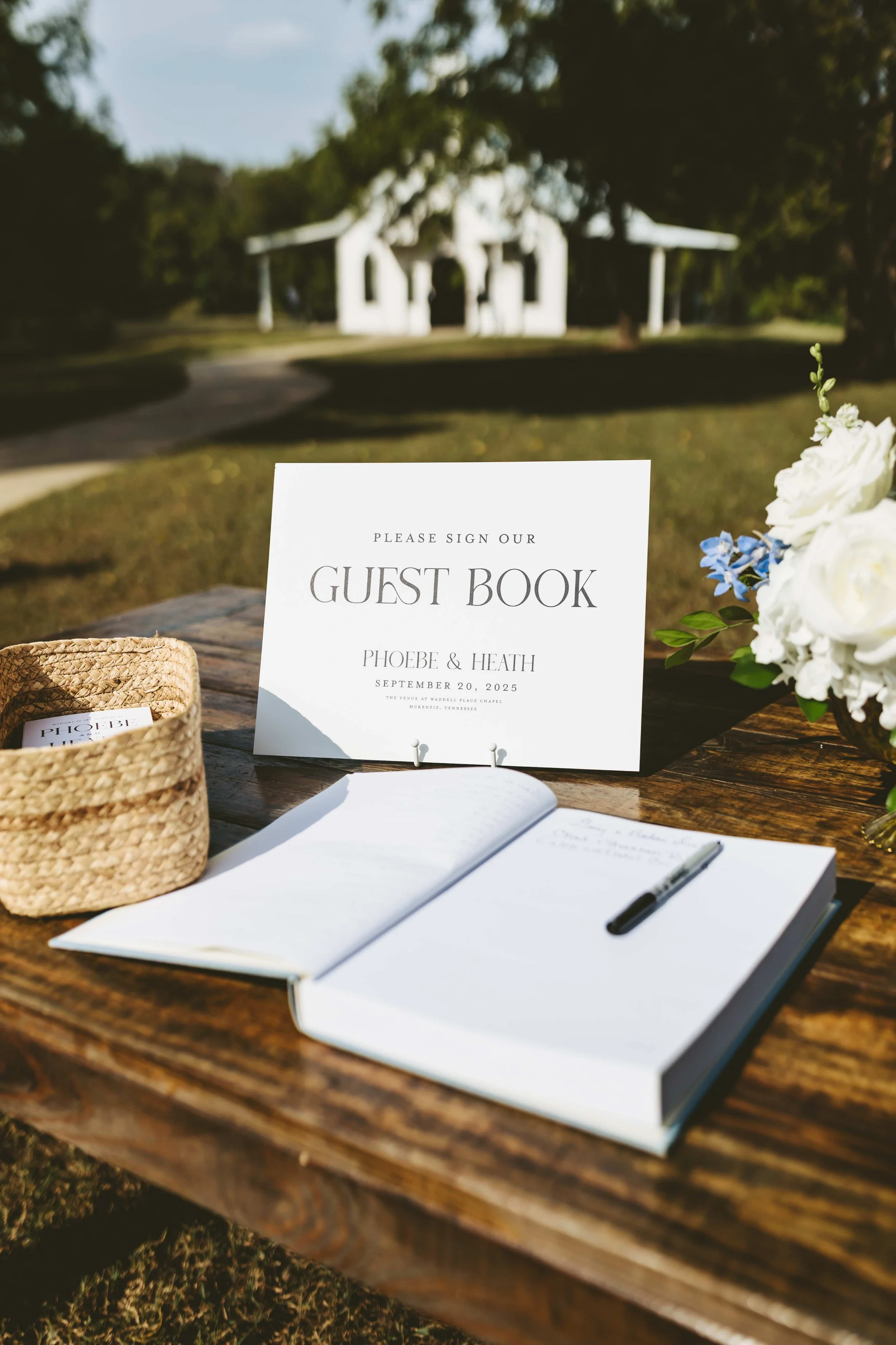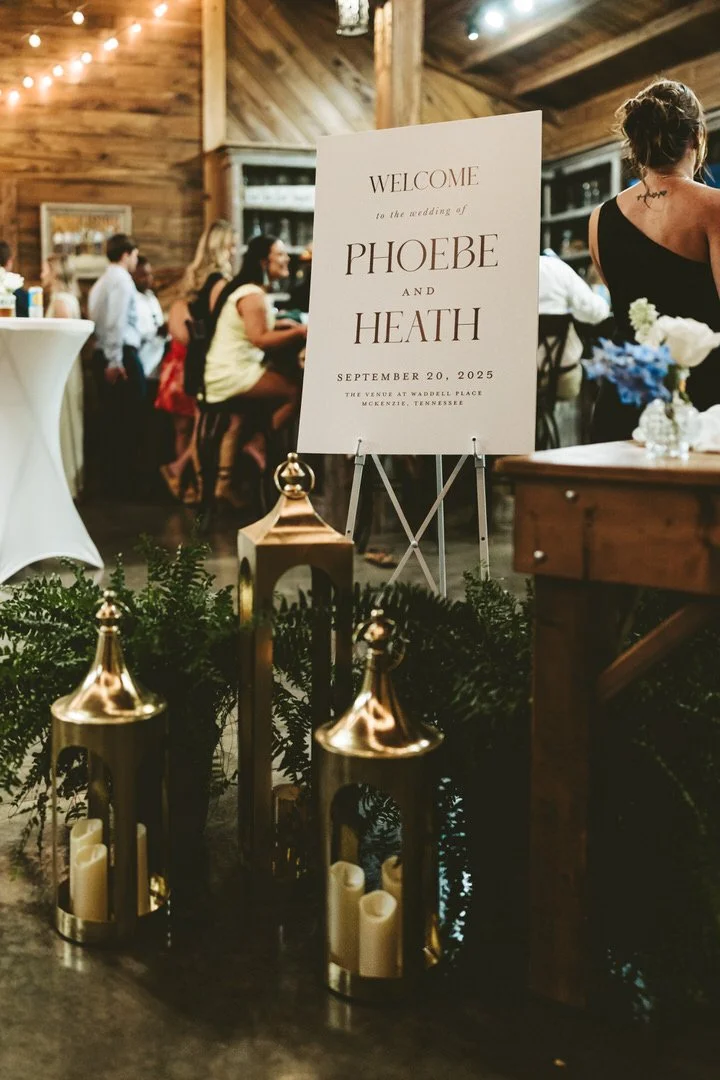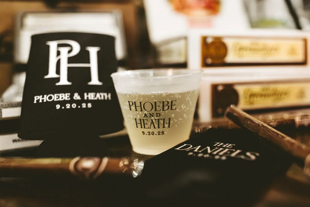 For Phoebe and Heath, that meant designing every visual detail with intention. Their save the dates and invitations set the tone early, featuring a bold gate-fold design that felt both classic and unexpected. I carried that same level of thought through the wedding website, ceremony and reception signage, and rehearsal dinner pieces. Custom elements like napkins, cups, and koozies added personality and helped tie the entire weekend together in a way that felt polished yet personal.